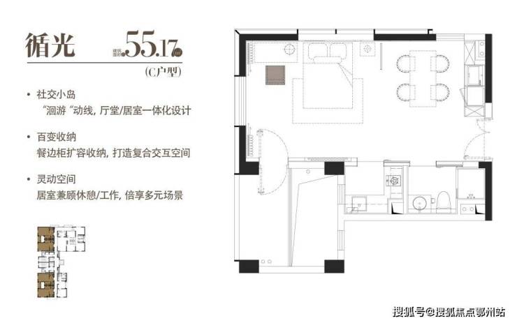 C|循光|建面约55.17 m²|一室一厅一厨一卫