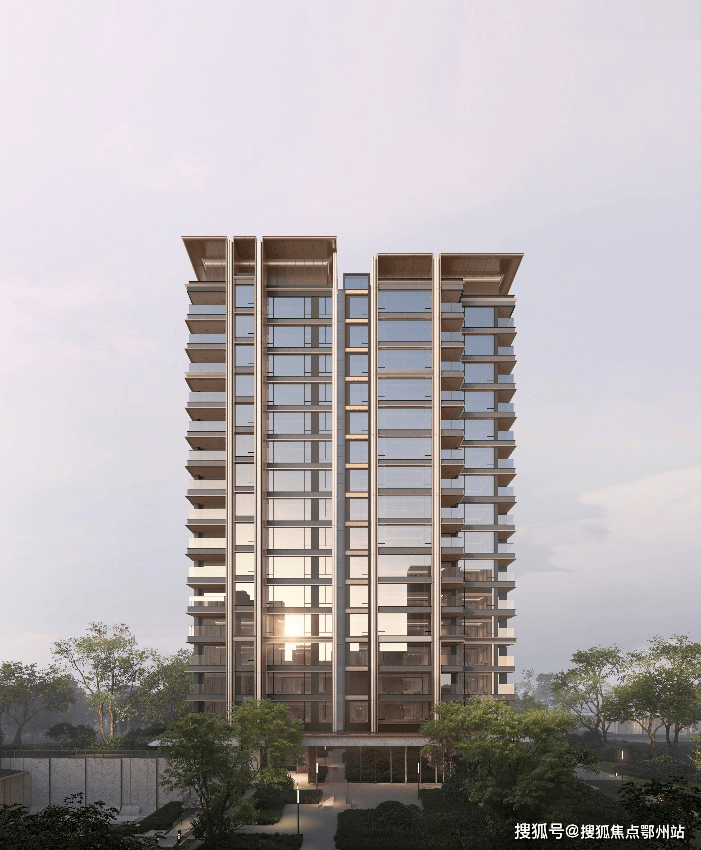 小高建筑立面借鉴纽约西57街111号的建筑立面,以丰富精致的竖向线条为主形体,强调建筑的挺拔感。竖向线条之间点缀鎏金金属材质作为次级形体,竖向线条截面通过反复推敲通过10余版线条方案的优化比对。立面层次丰富精致,整体呈现出温暖且有品质的建筑立面效果。