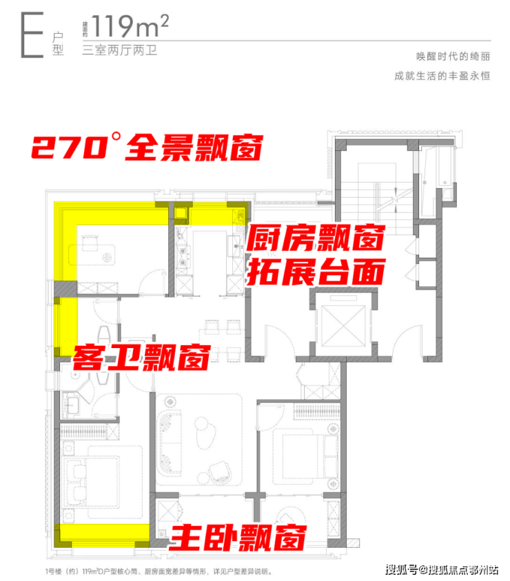 特别是 部分飘窗采用无承重设计+无墙垛设计,后期可灵活调整改造,可塑性极强、实现最大限度的实现真实扩容!
