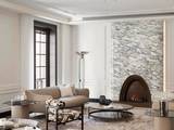 建筑立面 ,汲取广富林文化精髓再造东方屋宇,采用渐暖色石材、银灰色及香槟色铝板和涂料的组合,带来厚重与轻盈的平衡,在彰显文化豪宅的同时又包含国际风骨,整体呈现诗意东方之美。