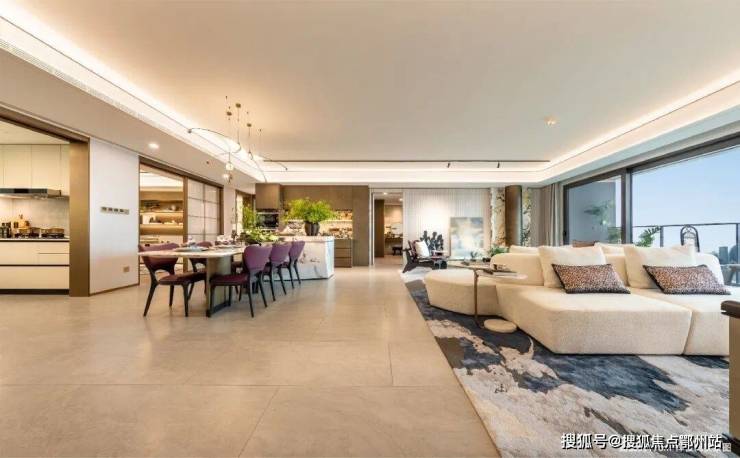 联通阳台、客厅、餐厅、厨房四大空间,打造约7米×约9.5米将近约70㎡的宽厅,无论是瑜伽、品茗、亦或是亲朋相聚……美好生活的场景,于此无尽上演。