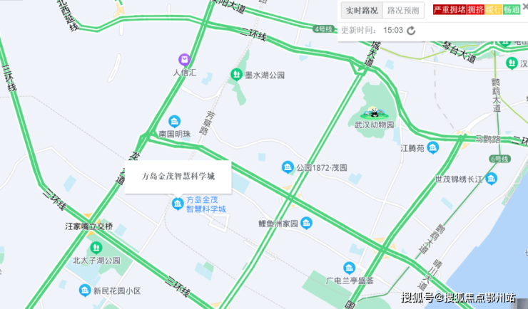 轨道交通方面,方岛金茂智慧科学城是地铁12号线(在建中)和地铁11号线(规划中)换乘站芳草路站地铁口项目。目前距离项目最近是地铁3号线四新大道站约1.3-1.5公里。