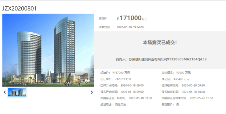 5月28日,青龙西路北侧、横塘河西路西侧地块进行限时竞价。 该地块以171000万元的价格正式成交,竞得房企为阳光城地产,楼面价12802元/㎡。