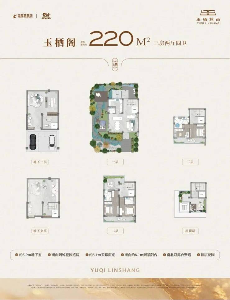 项目的户型设计相当出色,建面约220-320㎡联排产品,创新打造“双庭院+附赠空中双露台”,昆山罕见首层挑高客厅及南北双向地下室采光井等高定空间,重新定义昆山院墅尺度。