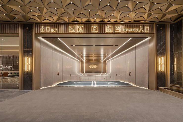 999枚金铝花瓣拼接而成的无雨落客区,与PRADA奢石照壁、潺潺流水辉映,于城市繁华间隐入自然之境。