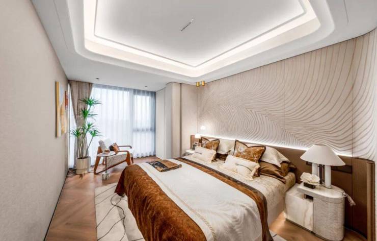 南向双卧通过阳台空间的延伸打造,实现了居住尺度的升级。阳台——卧室——盥洗室的三进格局,实现了南向双主卧套房的全尺寸采光,空间也能容纳更大尺寸家具而丝毫不显局促。