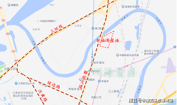 幸福湾星语位于解放大道以东,轻轨1号线藤子岗站以北约600米,楼市划分属于后湖板块,也属于长江新城起步区。行政划分属于江岸区,环线位置在三环以内。