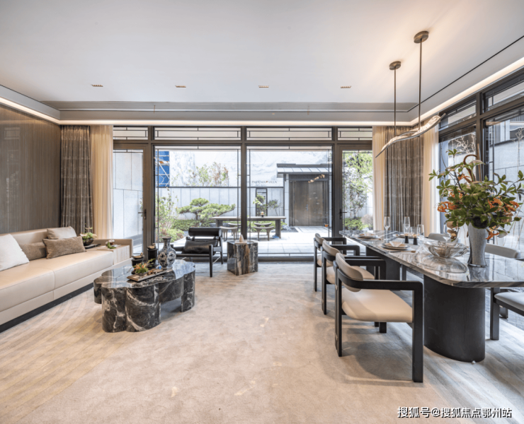 天地合一的江南庭院,衔接约10.7米剧场式阔厅,形成极具包容性的家庭社交中岛,创造宾朋之间亲密无界的分享与交流,或品茗笑谈,亦或闲看云卷云舒……目光所及,皆是亲朋好友的欢声笑语。