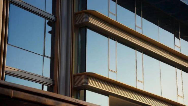 石材的转角被打磨成温润的弧度,并在交接处实现精巧的三向倒角;定制弧形铝板与通透的玻璃交织,让建筑在光影变幻中,呈现出如玉石般细腻、流畅的光泽与质感。