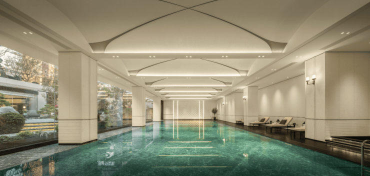 恒温泳池宛若嵌入庭院的一块碧玉,与窗外水景视觉相连;设施齐备的健身区,让运动成为面对森林的呼吸。