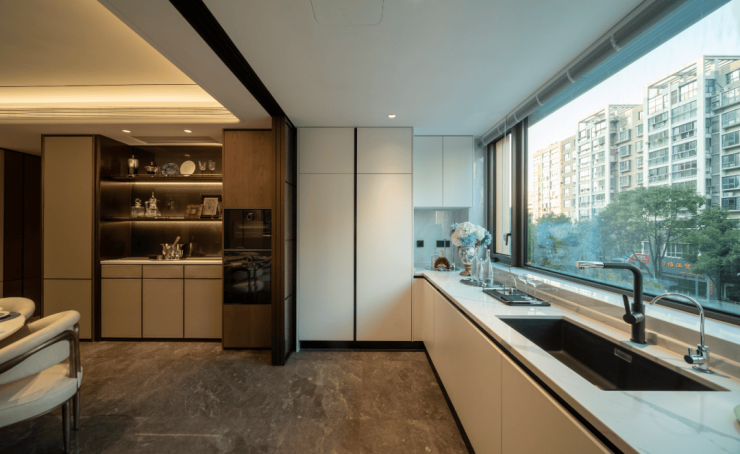即便是最小的165㎡户型,其厨房开间也超过4米;而225㎡及289㎡户型的厨房,开间更达到5米以上,为高端厨电与多人操作预留了充裕空间。