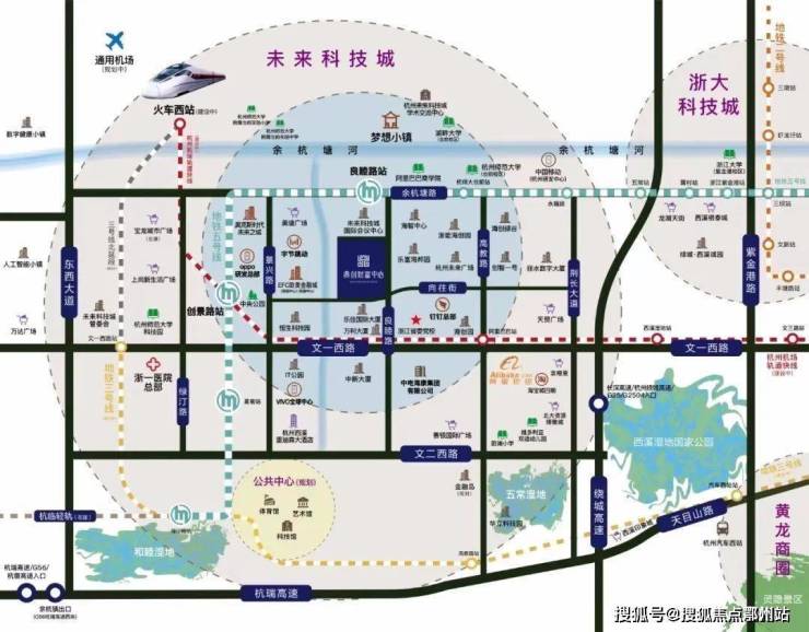 双地铁环绕,3号线文一西路站距离700米,后期会和杭州火车西站进行对接蔚蓝中心到火车西站,直线也就约2公里。