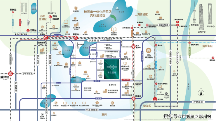 交通方面,项目门口即是 浦港路后期工程,未来往东直通上海青浦,往南到达浙江嘉善;距 上海G50(沪渝)高速出入口仅500米;距离项目不远的 苏州南站将在2024年建成通车,约25分钟穿越至上海虹桥。