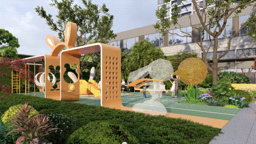 园内不仅设置了 林下休憩、阳光草坪、室内健身会所、会客空间等类泛会所空间,还有 约500m环形健身跑道、星际主题儿童活动区、青年健身区、老人活动区等全民运动基地,无论是老人、儿童还是青年,都能找到属于自己的天地。