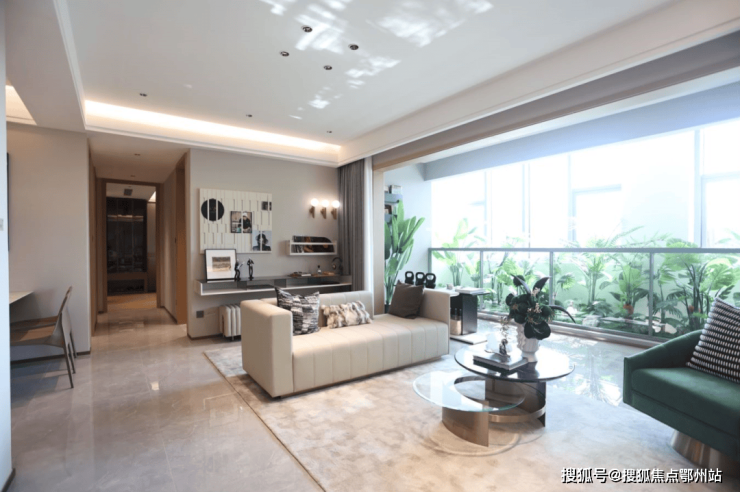 同样是双开电梯入户,私享独立的电梯入户厅,还设置了 独立入户玄关;四开间大尺度朝南, 约4.95米的客厅开间连接 约7.95米的超大景观阳台,生活更加宽敞舒适。