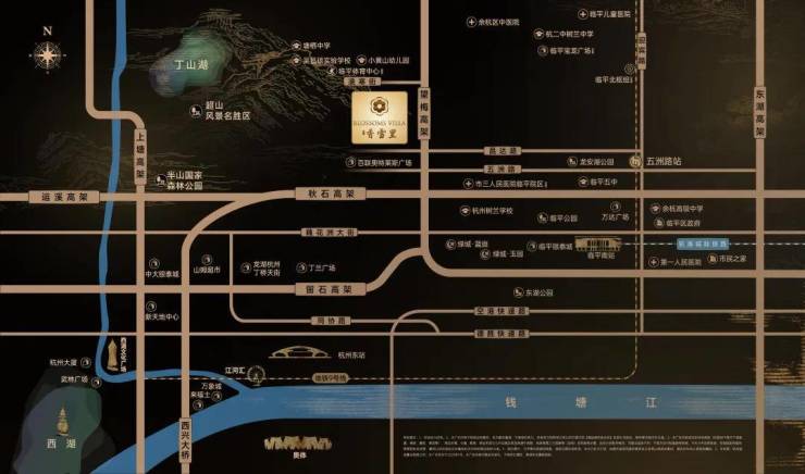 被“三横一纵一枢纽”路网环绕 ( 望梅高架、秋石快速路等),2.5公里直达 临平北站 ,无缝衔接杭州主城。毗邻超山风景区、丁山湖、 塘栖古镇 景区,板块山水资源丰富。周边商业配套齐全,临近百联奥特莱斯、万达广场等,且教育资源充沛,临平三中吴昌硕实验学校(九年一贯制)、小黄山幼儿园等优质资源将满足住户的一站式就学需求(学区以交付后划分为准)。