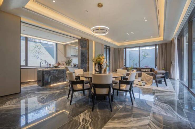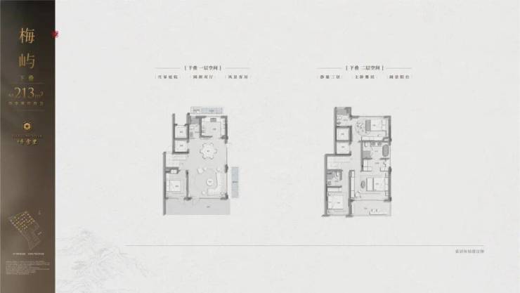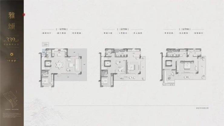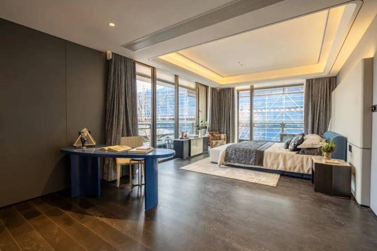 中间套300㎡地上三层双主卧套房设计,每间卧室连通露台或庭院;L型景观面实现“移步异景”。边套340㎡顶层阳光房与私家电梯入户,主卧独占整层,躺瞰超山梅花盛放,地下室可拓展为私人艺术馆。