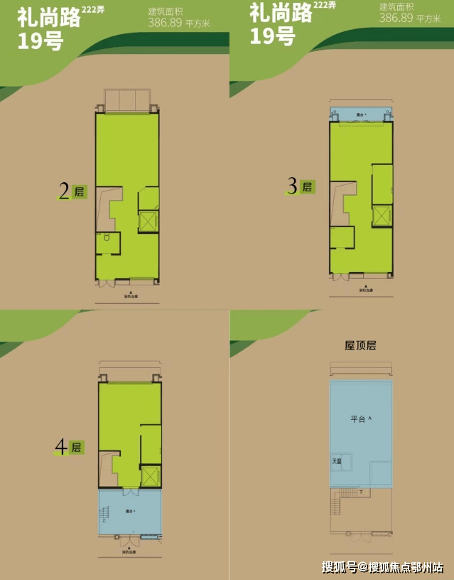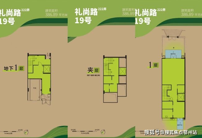 标准户型:地上4层(1~4层)、地下2层(夹层、B1层),多层商业空间,可灵活设计;外设独立门牌,内设独立电梯★,B1层可直达地下车库;首层设南北双门,连接绿化*;预设太阳能热水系统