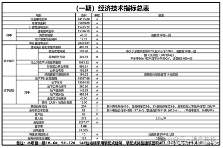 住宅23741平方米,住宅131户,户均181平米。无空中花园、非第四代建筑,架空层696平方米,公共会客室166平方米,风雨连廊191平方米。地下公共会客厅281平方米,地下健身房145平方米,地下游泳池492平方米。