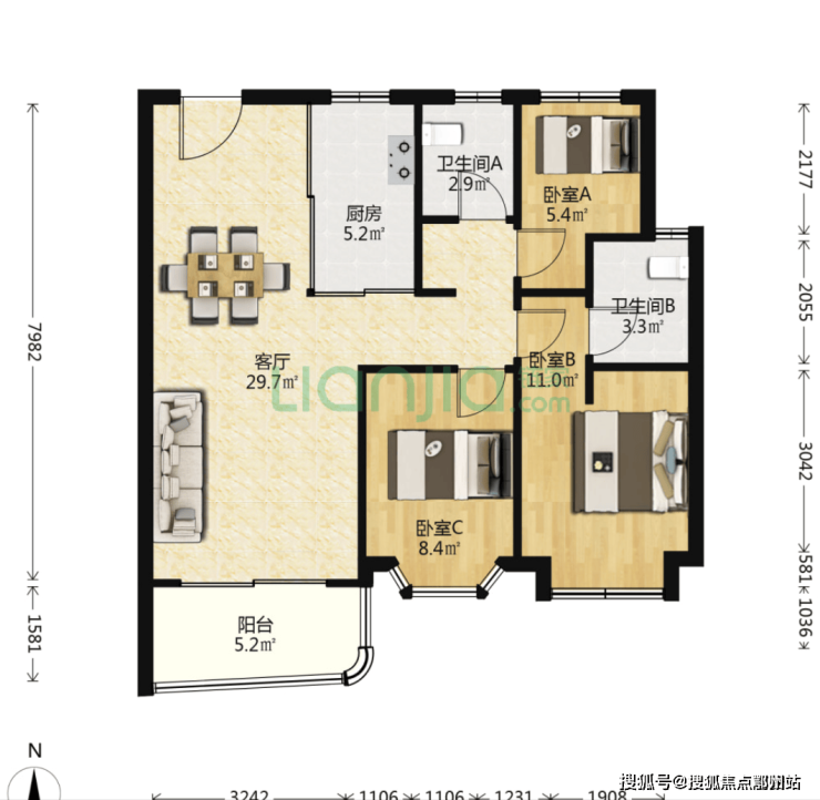 户型:3房2厅2卫