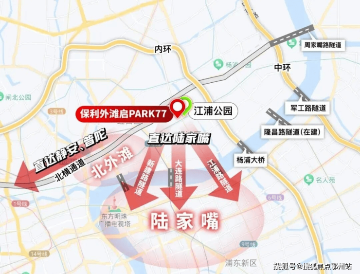 交通网络是保利外滩启PARK77的一大王牌优势。项目坐落于12号线与18号线交汇的江浦公园站上盖,这一配置在寸土寸金的内环区域实属罕见。