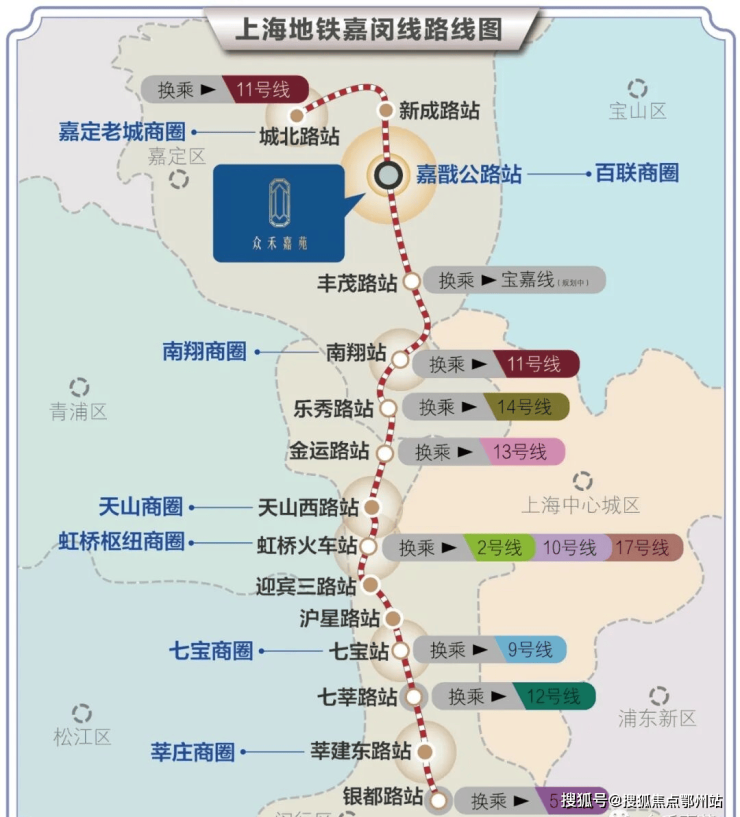 嘉闵线(在建中)可实现2站南翔,6站直达虹桥枢纽,途径十余条轨交(含在建&规划线路),快速通达虹桥枢纽、人民广场、陆家嘴、七宝、莘庄等核心区域。