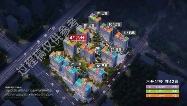面积:B户型108㎡14套、C户型113㎡14套、F户型139㎡14套