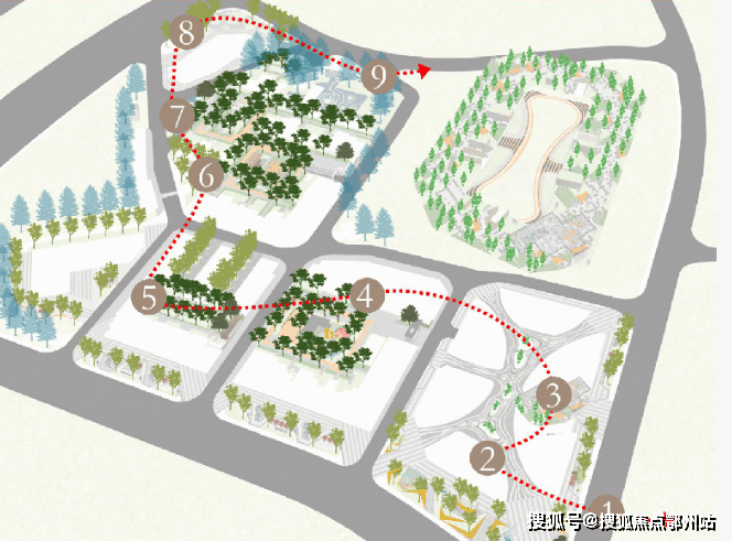 园林设计在当今的后疫情时代,需要给予社区足够的活力,以体现项目的品质需求、绿色生态需求、乃至于交友需求。以“林中乐园、国民运动场、全龄互动”为核心出发点,打造“都市森林”园林主题,强调森林级、健康式的生活。整体园林以“高山流水”为精神内核,打造“森林九景”,涵盖山洞奇观、蘑菇乐园、年轮乐园等主题景观,将主题景观完美的融入到社区之中,更显生活格调。
