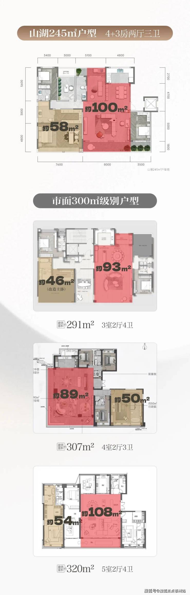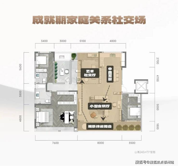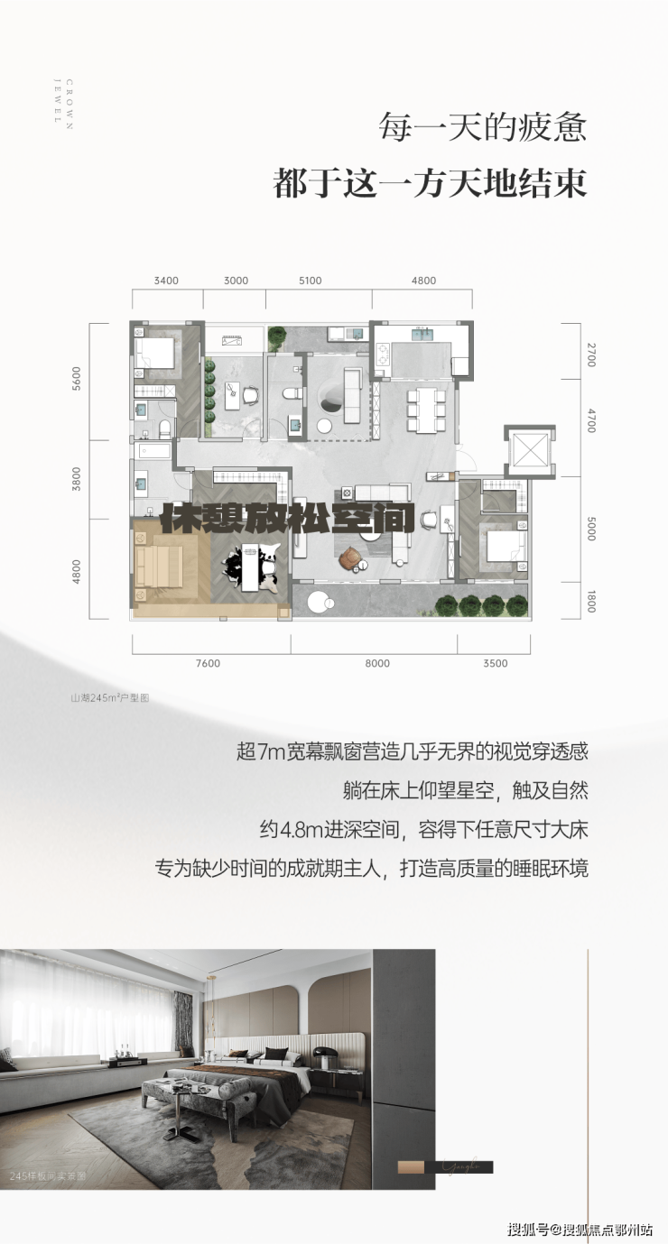 主卧系统尺度——山湖245打造约58㎡主卧大空间,打遍市面300㎡户型无敌手。