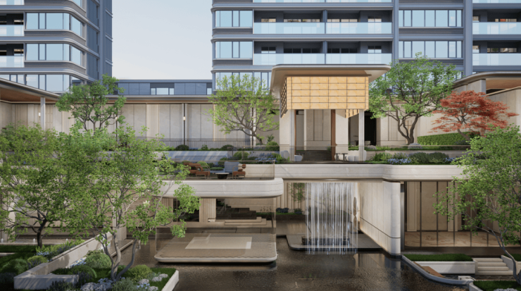 能建·东宸誉府的景观以“海上行舟,归心浮屿”为理念,将整个社区打造成一座可游、可赏、可玩的立体花园。