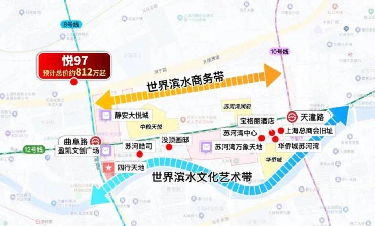总价仅约812万起的悦97占位的正是苏河湾的正C位,享受 最纯正的“苏河湾”式生活!