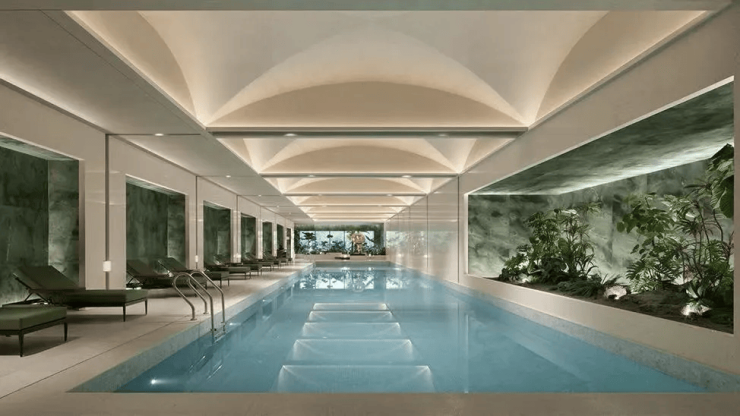 甚至打造了上海首个植物泳池,皮革面绿色石材替代冰冷瓷砖,光影成“树影斑驳”秘境,是闺蜜拍照与私人派对的理想之地。
