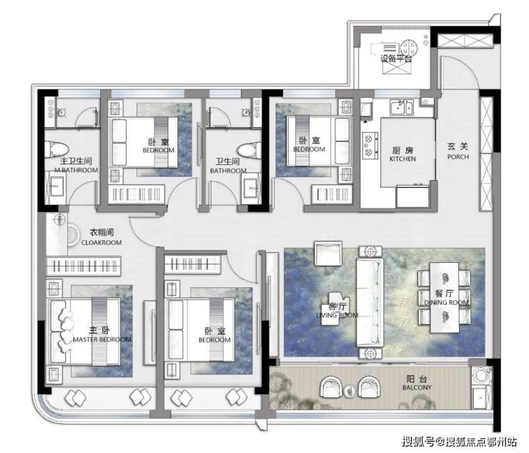 建面约 140 ㎡(东边套)丨四室两厅两卫