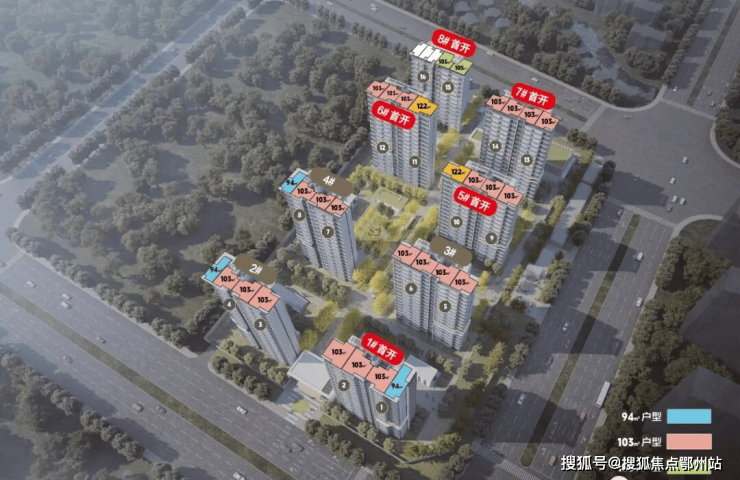 户型方面,主力产品建面约94-122㎡3-3+1房。