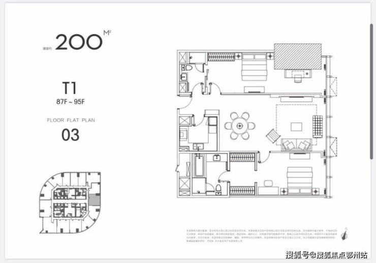一共仅84套,位于87-92层中高区,面积为160㎡-310㎡