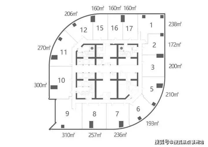 这次推出的房源户型面积为160㎡-310㎡,位于87-92层中高区,也就是一共6层楼,一层楼一圈14个户型,正好84套。
