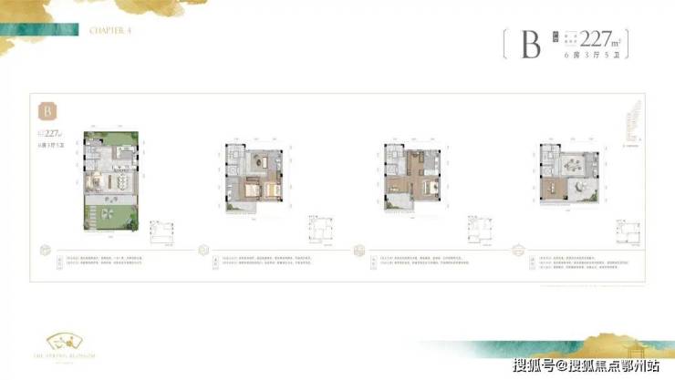 本项目创新性实践"天人合一"的现代居住哲学,通过月门、花窗、雕栏等传统建筑语汇的现代化转译,构建"四维渗透"空间体系——户内空间与私家庭院互为延伸,院景与远山形成视觉对话。产品线涵盖149-227㎡产权式庭院住宅,配置全生命周期配套设施:规划有环社区健康跑道、生态垂钓区及可租赁式农园,实现城市生活与自然体验的无缝衔接。