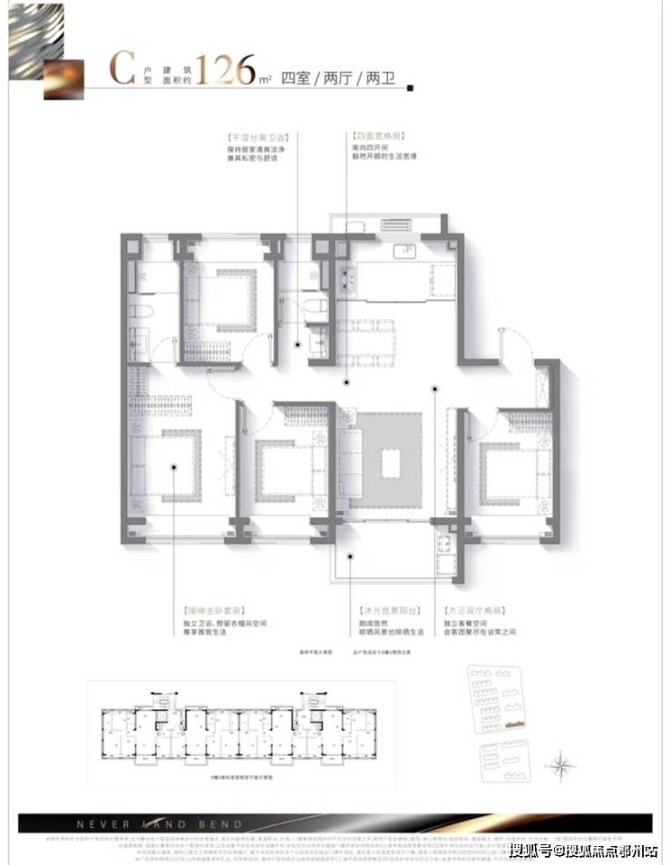 如96㎡三房两卫,紧凑布局兼顾功能与舒适;126㎡四房横厅设计,南向四开间,LDKG一体化空间拓展家庭社交场景。