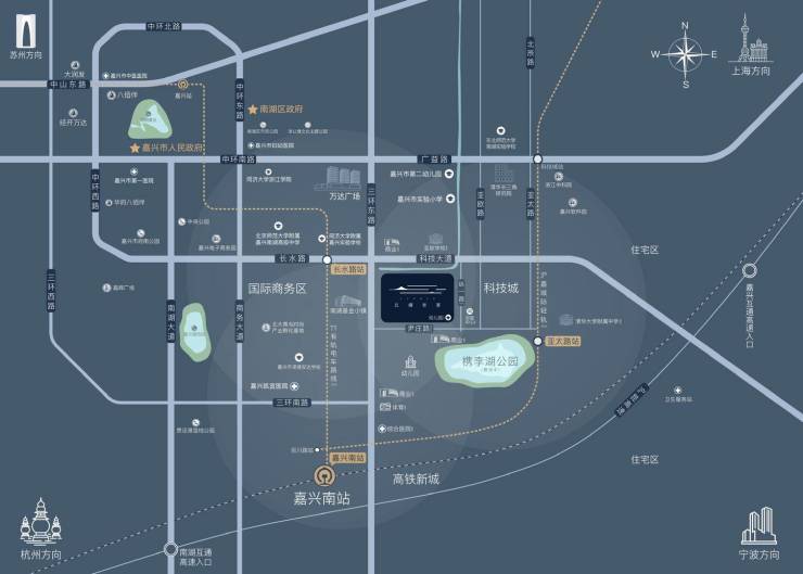 距离沪嘉城际铁路站点预计 1.5 公里(预计 2021年6月通车),距离嘉兴南站 3.6km