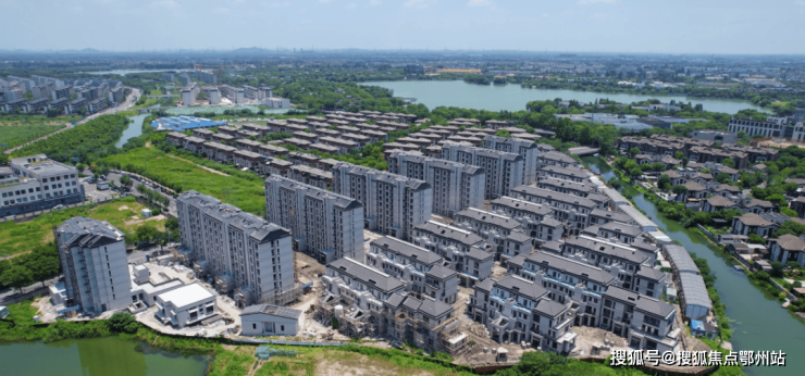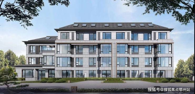 建筑是新中式风格和坡屋面设计, 别墅1-3层、洋房1-2层采用天然石材干挂,实地景观和建筑质感都不错。