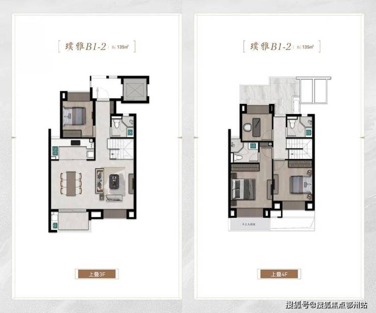 上叠三层是客厅区域,四层是主卧套房区域, 最大特点是一个比较宽敞的露台区域,很适合度假型买家。