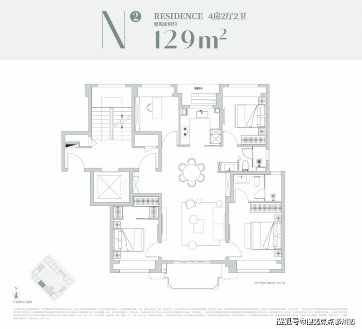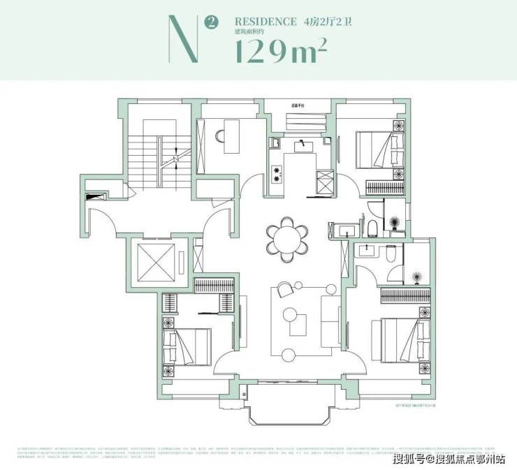 129㎡基本是这次产品线里的“人气担当”。四叶草格局让四个房间分布在四角,私密性和动线都有保证;南向三开间+宽尺度客餐厅,让一家人的起居、社交都很舒展。