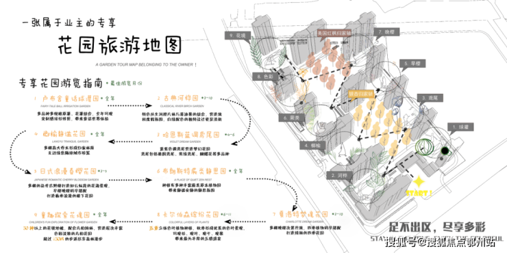 重叠丰富的色彩带来四季多彩的色彩花园; 童趣探索花园里,50种以上的花境地被,在超150M的步道尽享森林漫步。