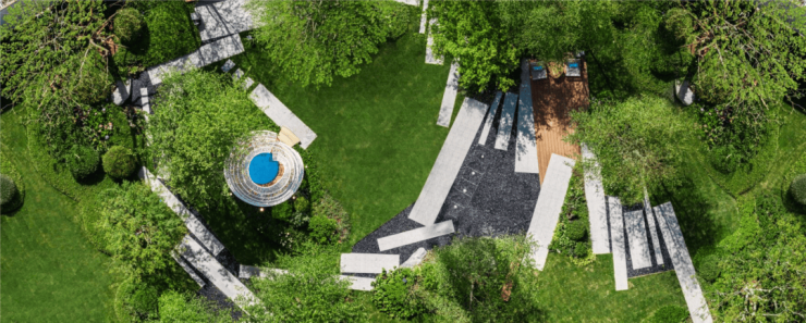 第四,由石材&铝板构筑的第二景观会客厅