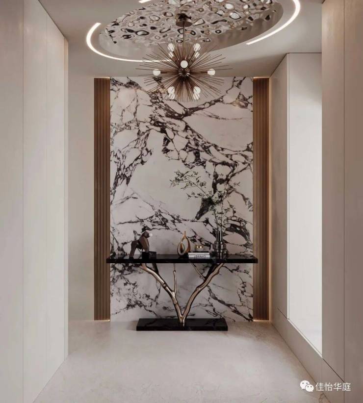 小区建筑设计以简欧风格为主, 外墙干挂大理石,整体是浅米黄色调。四周采用铝合金断桥双层中空玻璃采光窗装饰和庄重石柱,为别墅的豪气程度增添色彩。样板房室内装修为轻奢和简欧混搭风格,自带高级感的设计元素彰显了住户的气质。(结构形式采用砖混结构,优点是保温隔热效果好,缺点是整体性较差,不能擅自拆改墙体。)