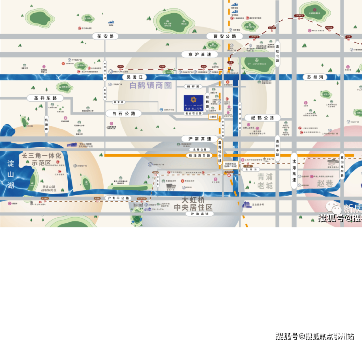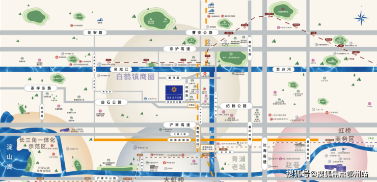 • 市域铁路:未来市域铁路嘉青松金线,将贯穿嘉定、青浦、松江和金山,届时白鹤将与青浦新城直接连通,并换乘轨交17号线和沪苏嘉城际线。