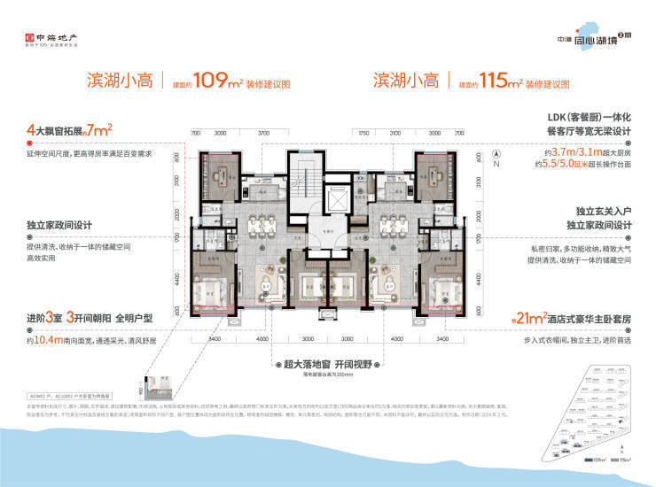 建筑面积约109㎡三室两厅两卫/约115㎡三室两厅两卫