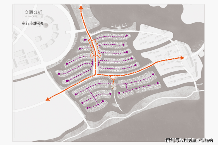 联排别墅如棕榈叶一般舒展开来。每一排别墅前都有一条渠道,引入水系,