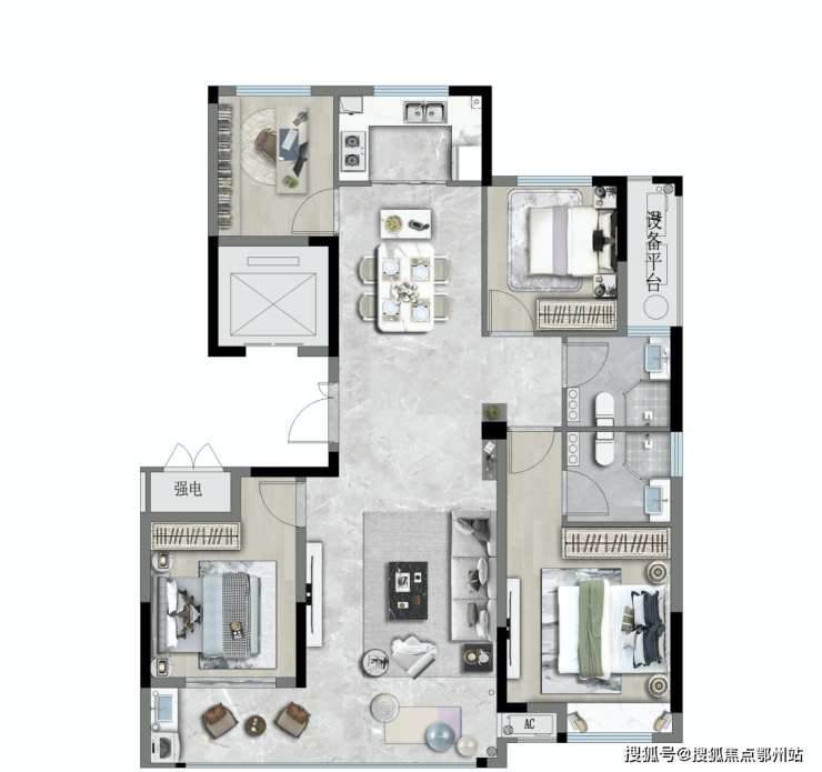 四叶草方正户型,主卧、南次卧与客厅三开间朝南,南向高效采光面,容纳更多阳光,打造更有温度的家,让清晨的第一缕阳光唤醒一天的理想的生活!