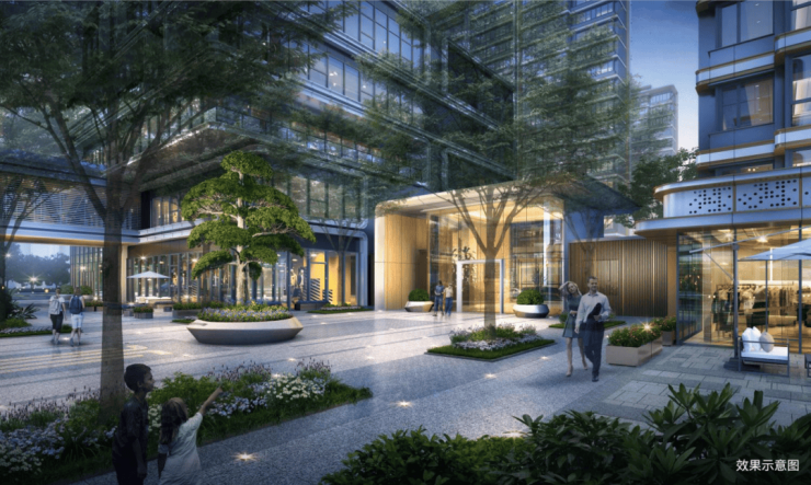 绝大多数项目对于社区的理解,仅限于围墙以内,而中环桃源里,则将社区生活延伸到了围墙以外,项目在南北地块之间打造了 新桃源会客厅 , 既是社区与城市的缓冲带,也是业主们的 “第二客厅”,同时,也让这里成为了一片好逛的繁华街区,更具烟火气。